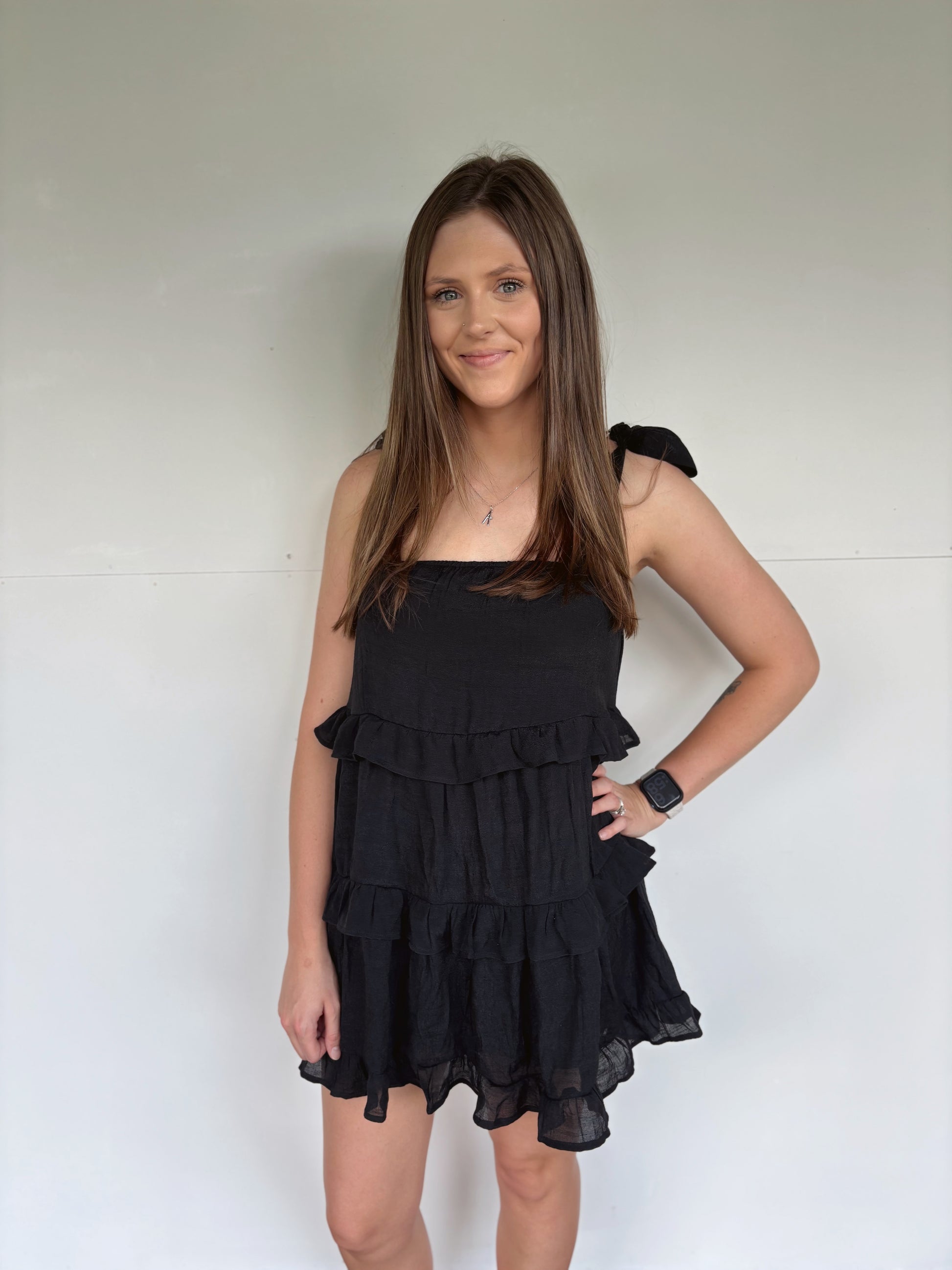 We are loving this girly tier dress! The ruffles give it just enough and the black makes it so sleek!